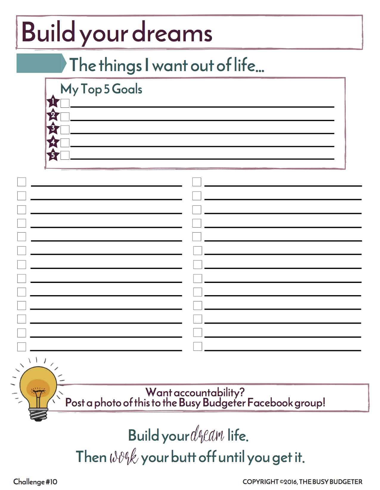 - Check out: The Ultimate Money Savings Workbook which you can get for free here (Note this can be found in the back of the workbook).
