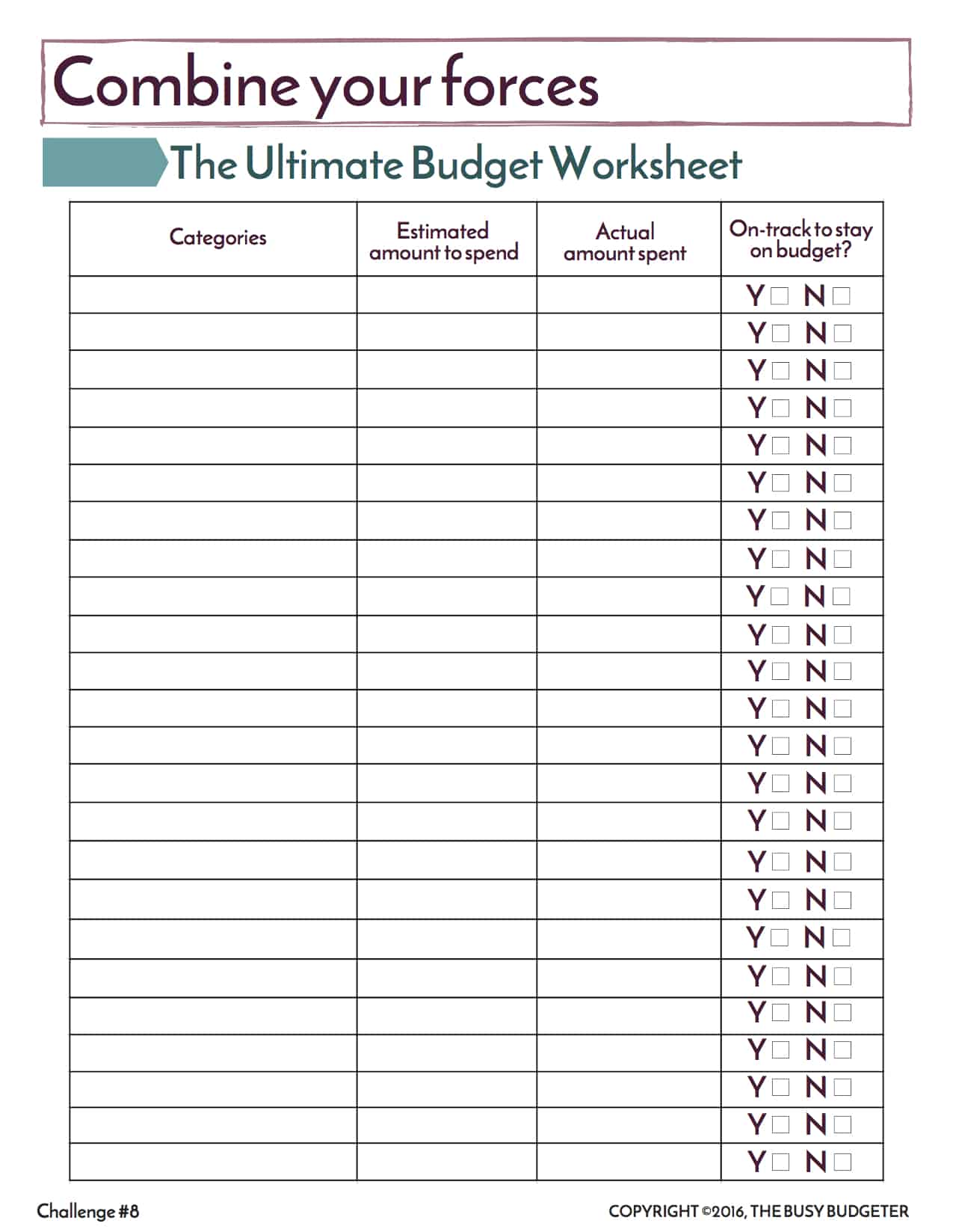 - How should I keep track of my budget once I have completed the challenge? Use this Monthly Maintenance Pack.